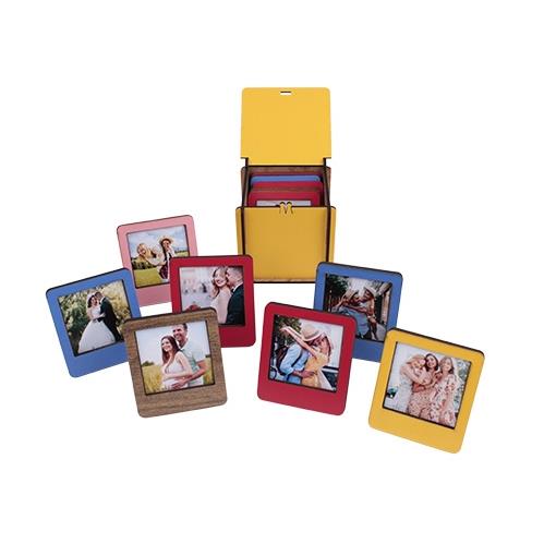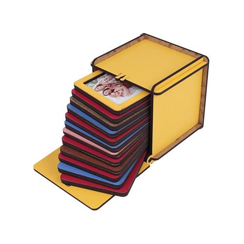 Sarı renkte MDF malzemeden üretilen kutusu ve 12 adet farklı renklere sahip olan Polaroid İnstax Çerçevelerini, 5 x 5 cm ölçülerine sahip 12 adet fotoğraf ile süsleyebilir, masaüstünde konumlandırabilirsiniz.